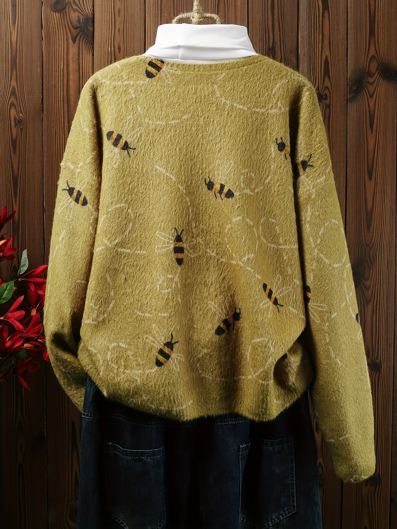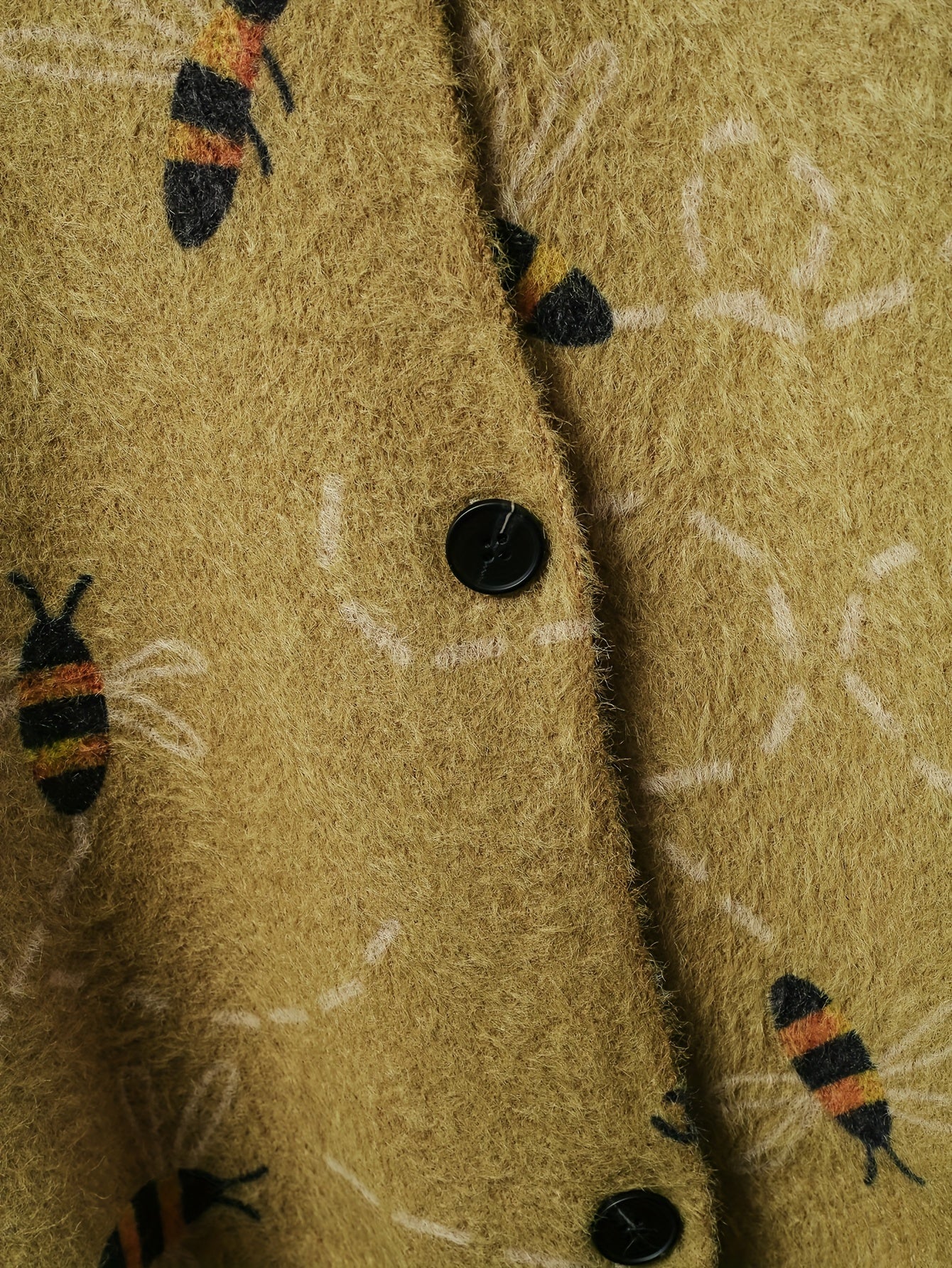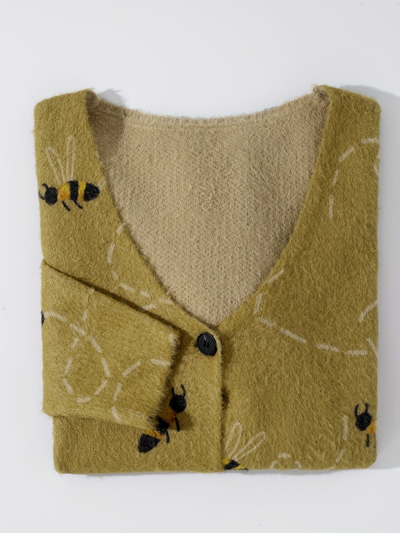 Plus Size Women's Full Print Bee Pocket Cardigan, Autumn And Winter Casual V-neck Short Long Sleeve, Women's Plus Size Clothing