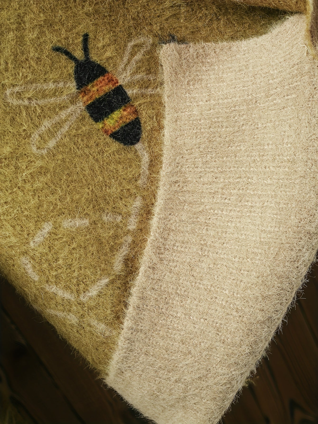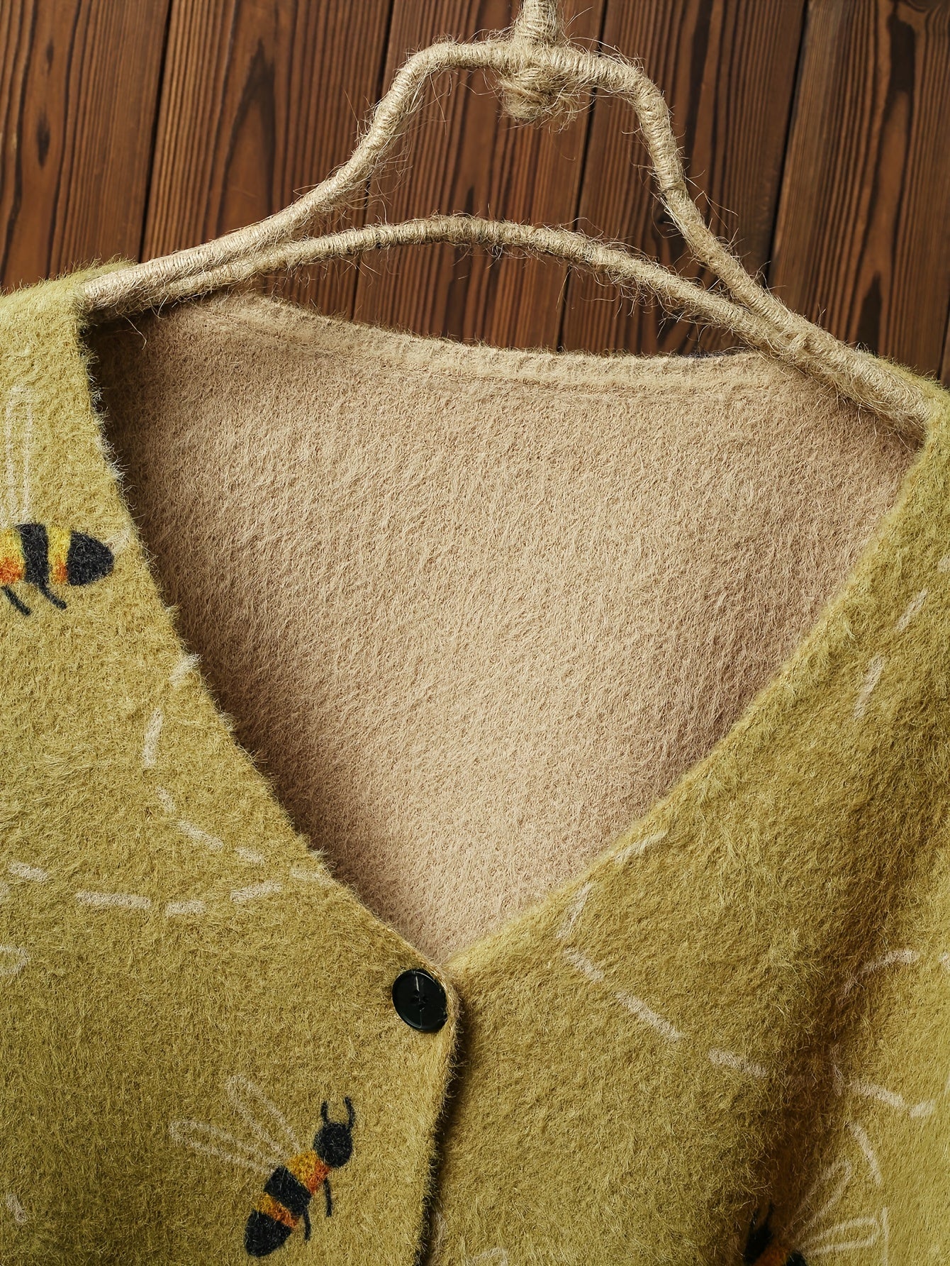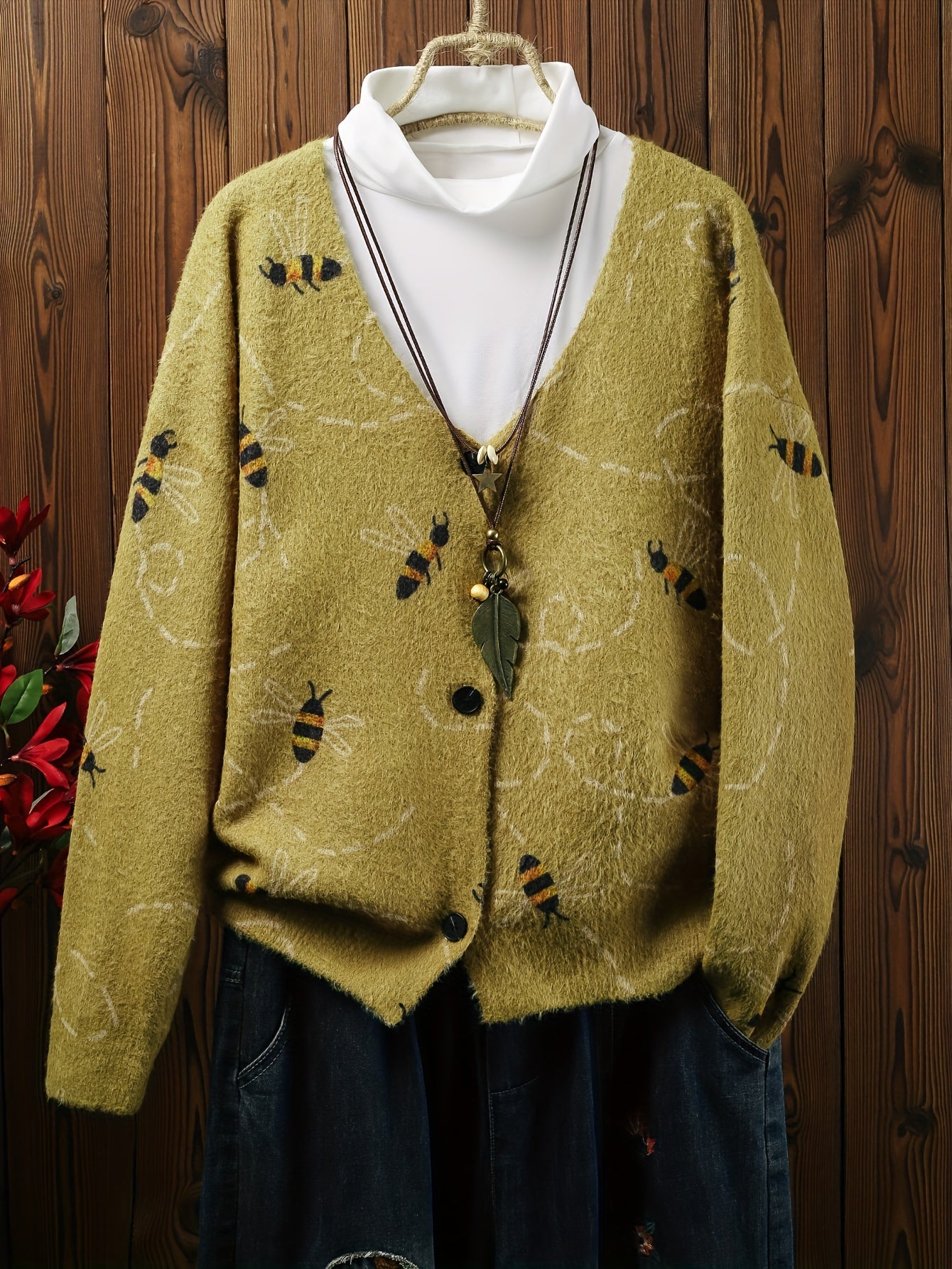 Plus Size Women's Full Print Bee Pocket Cardigan, Autumn And Winter Casual V-neck Short Long Sleeve, Women's Plus Size Clothing