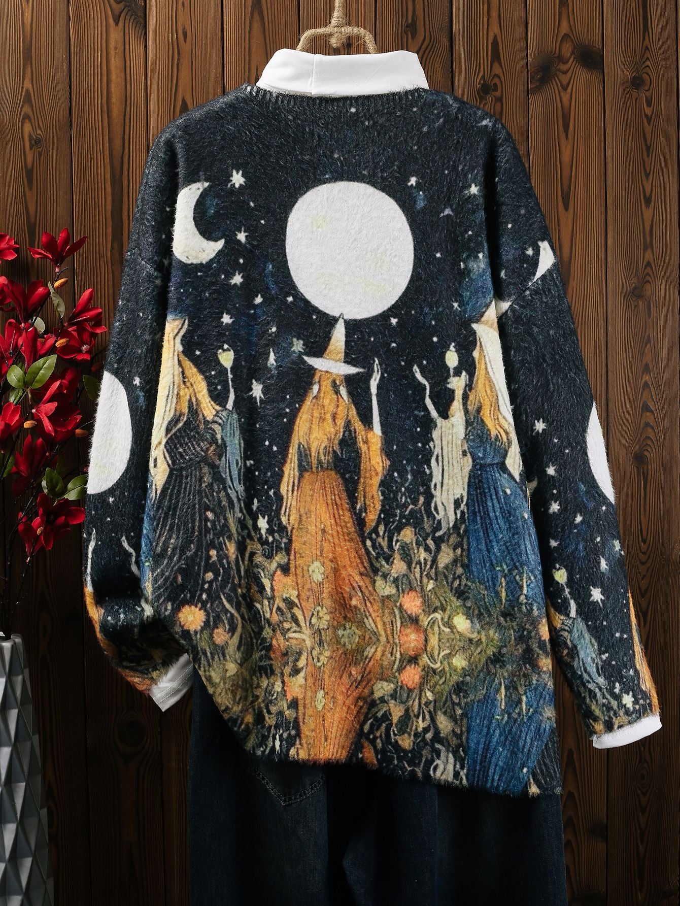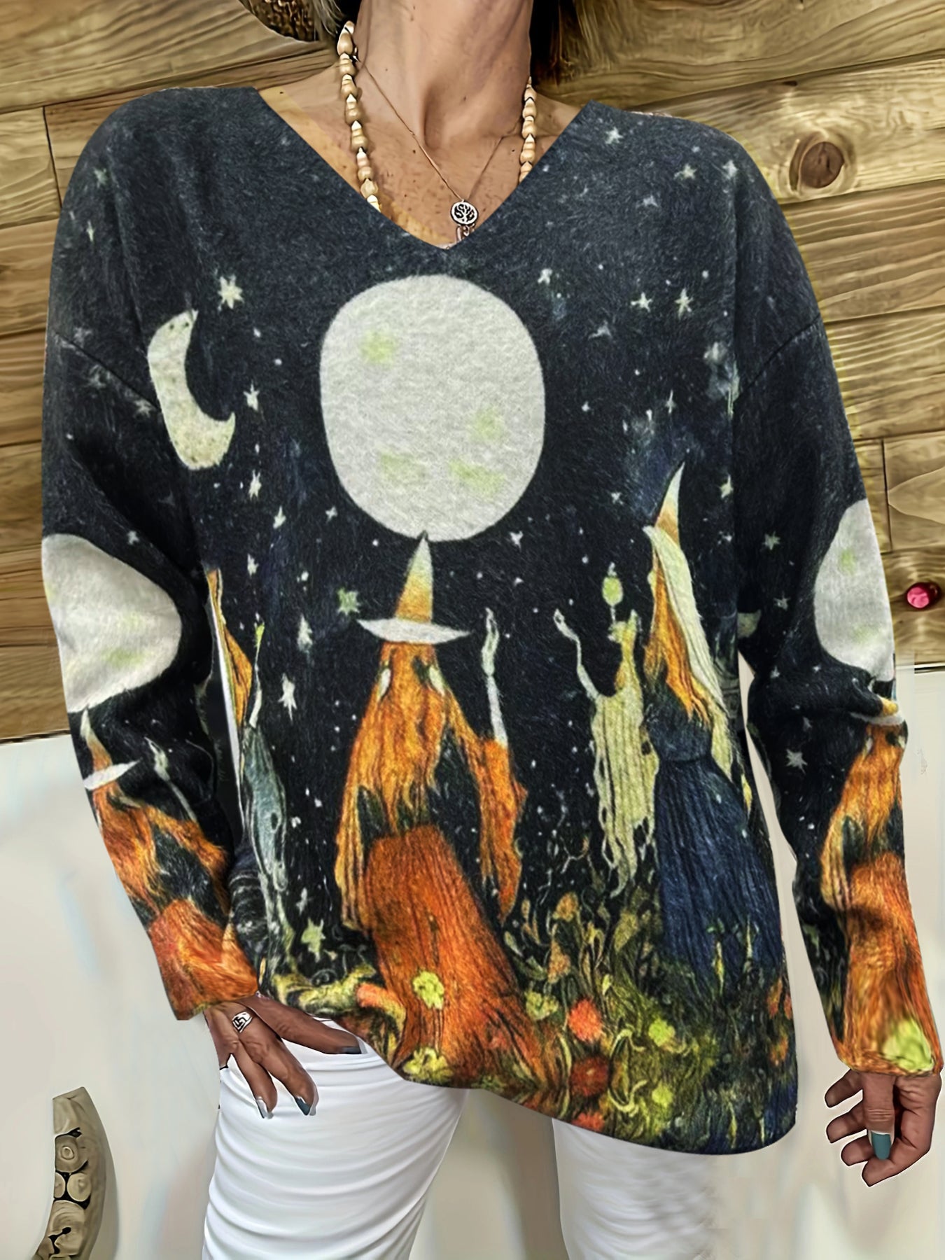 Plus Size Women's Mink Fur, Autumn And Winter Halloween Printed V-neck Top, Knitted Pullover Warm Sweater